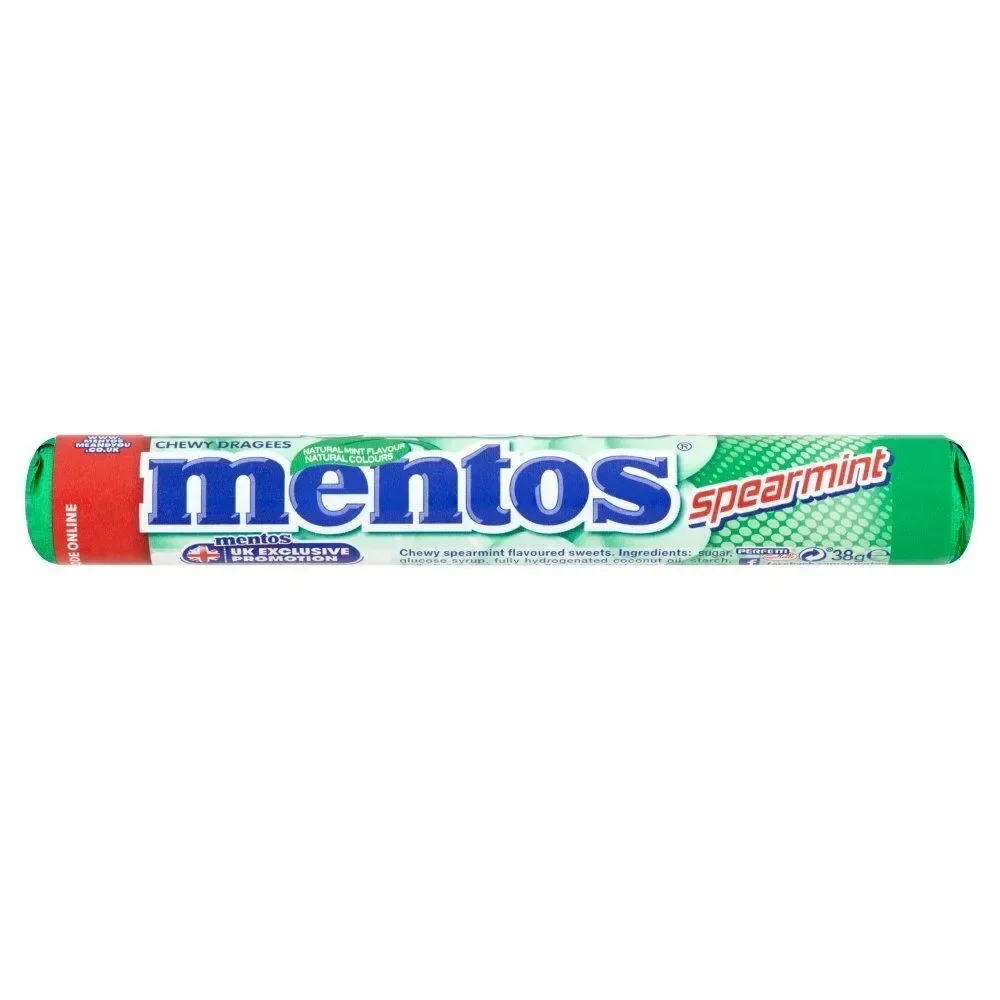 Mentos Spearmint, onze meest verkochte rol!!! Dit is de bekende Mentos topper met wat we vaak horen een ‘tandpastasmaak’. Mentos Spearmint is ook wel bekend als Mentos Chlorophylle.