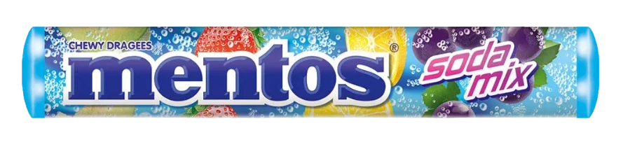 Ontdek Mentos Soda Mix, de lekkere combinatie van zachte snoepjes en populaire frisdranksmaken zoals aardbei, sinaasappel en citroen-limoen.